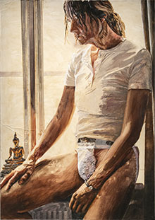 Även om Ericson inte talar om sina avbildade kvinnor som självporträtt är det ibland svårt att inte se modellerna som just det. I serien The Empty Form Goes All the Way to Heaven, några ockrabrända såriga bilder, tycks en ”avatar” (Ericsons ord) meditera med underkroppens tillstängda gördel i fokus. Och för den som vill fundera över den mera existentiella och psykologiska sidan av Ericsons måleri finns onekligen en bra ingång i själva utställningstiteln Subterranean Hunger.
