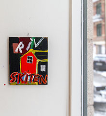 Bångstyrigt framträder rummen både i sin måleriska form och i själva materialiteten. Spruckna sneda skivor med synliga skruvhuvuden och häftklamrar ger ännu en dimension till känslan av självdistans. Under dukens färglager sitter prislappen kvar som en liten rundad rektangel, självklar och nödig.