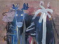 Med en dramatiskt uppbruten collageteknik i oljemålningarna, till en mer subtil sådan i teckningarna, blir bilderna ofta visuellt överraskande till karaktär och uttryck... Läs mer |