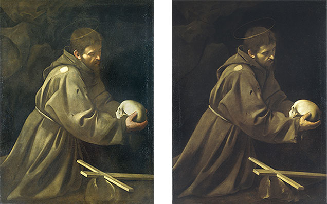 Är det en händelse som ser ut som en tanke att Caravaggio, under sin flykt från släktingarnas hämnd, gör en målning av den helige Franciskus; rikemanssonen som genomgick en omvändelse, avstod från sina medfödda privilegier och ägnade sitt liv åt att vårda de spetälska och sjuka?
