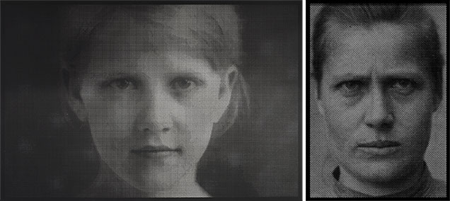 De är mycket beroende av ljussättningen, Anne-Karin Furunes perforerade dukar med ansikten i monumentalformat. Takhöjden i Västerås konstmuseum möjliggör en välnyanserad belysning som understryker konstnärens avsikt: möten med betraktaren, i nuet och i historien.