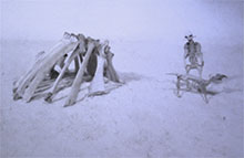 Mera fysiskt och konkret påtagligt beskriver Tilda Lovell vad döden lämnar efter sig. I ”Fetish Remains” är ett vitskimrande skelett upphängt på en krok – en sällsam, smått sakral varelse med händer och fötter intakta. Ett skuggliv? I animationen ”Landescape” är tonen mera uppsluppen – benbitar förenas, går i sär och förenas på nytt i utopiska konstellationer.