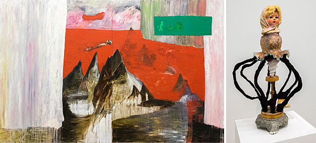 Ovanligt nog framstår de aktuella gallerirummen som spatialt sett otillräckliga denna gång. Enligt utställningskatalogen mäter den större diptyken så mycket som sju meter i bredd (den ena delen är reproducerad här ovan). Så intressant det hade varit att få ta del av den i sin totala, sammansatta helhet. Och apropå väl tilltagen skala så tycks Karin Lind varken rädas dramats mäktighet eller associationernas glidningar mot en romantik i Caspar David Friedrichs anda. Är det med Schuberts elegiska Wanderer-fantasier i öronen man bör blicka ut över Linds drömlandskap?