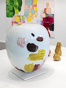 Detta förhållningssätt har hon hållit intakt, men med tillägg att händelserna även tillåtits att ta fristående tredimensionell form. Trasor och tyger har virats och doppats i porslinslera som skulpturer av penseldrag i kraftig uppförstoring. Kärl och behållare i lera har bränts och glaserats, några ristade, andra fläckvis bemålade som ekon av hennes målningar. Samtliga dimensioner och ingångar finns nu redovisade i konsthallens vackra rum.