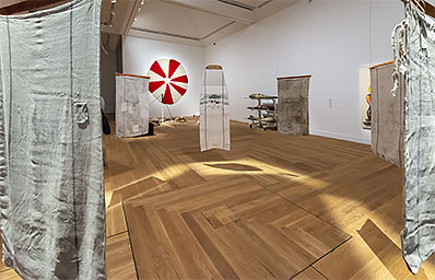 För dem som hade tillfälle att ta del av förra Stockholmsversionen av Modernautställningen, 2010, är det slående vilken tvärvändning i visuell estetik det huvudsakligen handlar om här. De två kuratorerna har gjort upp med de då så omhuldade arkiven och glasmontrarna (vilka kan sägas vid tiden även var en internationell trend). Istället är det berättarflödet och den visuellt bärande idén som dominerar årets upplaga. Här finns flertaliga exempel på måleri, textil och objektskonst i det utvidgade fältet.