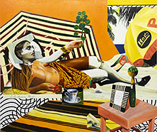 Love Lundell beskriver i katalogen till den nu aktuella utställningen på Wetterling Gallery hur ett uppdrag att göra ett skivomslag blev en vändpunkt. Klipp ur bildbanken fogades samman med Photoshop och tekniken har fått följa med för att skapa förlagor till dagens målningar och teckningar. Färgen i måleriet är hög och bildfragmenten spjärnar emot som i ett motsträvigt collage av kantigt, urklippta veckotidningsbilder. Varje del har maskats av och arbetats fram så att brotten mot den gemensamma ytan framstår tydligt.