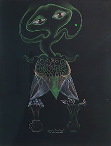 Det surrealistiska spelade trots allt roll för Greta Knutson. Under 1970-talet, vid sidan av det ”venetianska retromåleriet”, dyker drömska, berättande och mångtydiga bilder upp. Det är sagoaktigt och fantastiskt. Knutson kallar sina bilder ”oneiriska” (dröm på grekiska) och det är frestande att tänka att hon kanske ändå ville hinna utforska också den stil hon tidigare så bestämt avvisat. Om nu avvisa är rätt ord, för med den överblick som utställningen ger syns spår av det öververkliga långt tidigare: I början på 30-talet i några cadavre exquis där Knutson tillsammans med Tristan Tzara, André Breton, Paul Éluard mfl roar sig med att skapa irrationella gruppkompositioner, och i slutet av samma årtionde Knutsons gåtfulla teckning Kvinnohuvud vid fönster.