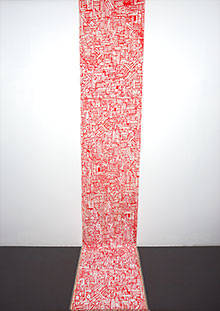 Mattorna är numrerade i den följd de tillkommit – senaste mattan nr 195 är en punkigt uppnosig gestaltning som utom allt tvivel ställer begreppet matta på sin spets. Mattans 10 delar flyter glatt runt på väggen och variationen i längden på garnets lugg ger en både skulptural och taktil känsla – och en överhängande lust att röra vid, känna och klämma på.