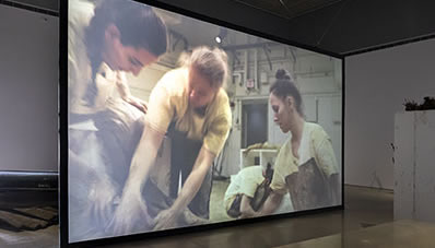 Som centrum i utställningen finns dock dokumentationen i form av videoverket från den en vecka långa performancen på Performa 19 i New York från i höstas. I den fyller tio dansare efter Éva Mags instruktioner lika många tyghöljen med lera. Var och en får leva och undersöka sin persona, sin plats i tid rum genom en fysisk brottning med materialet. Éva Mag har arbetat efter liknande tema i kärleksfull envig vid tidigare tillfällen. Det vittnar det generösa bildmaterialet i boken som släpps i samband med utställningen eller händelseförloppet på Bonniers Konsthall.
