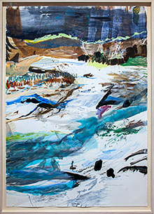 Rökgestalterna rör sig ledigt mellan de intrikata vävarna och de flyter in i varandras världar utan att direkt störa, men kanske hade dynamiken blivit starkare och mindre fragmentarisk om verken erbjudits mer närhet. De vill trängas mer, rusa mot varandra över golvet, genom de stora rummen. Bilderna bär känslan med sig men hålls i schack. Strömmen djupt under jord kokar långsamt upp och ånga väller fram, låter mönster och former lösas upp, trådarna brister och börjar spreta. Papperet tappar sin form, kolet smetas ut och kropparna glider iväg genom en stilla rökpelare, förlösta och lättade.
