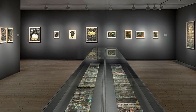 Slumpen måste ha spelat en viktig roll i arbetet, en hand och ett huvud som lyckas vila i det okända och litar på pennans vilja och seendets klarhet. Det är stora bilder i litet format, som en maximalistisk scenografi i miniatyr där det knakande ljudet från en åldrande mekanik kan höras i bakgrunden. Åskmaskinen rullas igång bakom kulisserna bland alla djävlar och ormbunkar, och rappa steg hörs över knakande gamla golv.