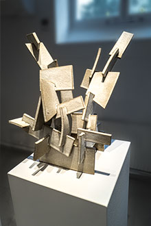 I projektrummet (en trappa ned) visar samtidigt Matti Hoffner några av sina bastardliknande assemblage och objekt. Jag såg hans verk på Konstfacks vårutställning 2025, där han tog sin kandidatexamen, och blev omedelbart intresserad av de överrumplande sammansättningarna (se länk nedan). Det handlar ofta om helt disparata objekt, som hämtade ur närmaste container, men som här förenas i gestaltliknande kammarspel. Och även om intentionen förmodligen inte är att betraktaren ska läsa in människoliknande figurer så bidrar dessa associativa tankelöpor ändå till den totala bilden av en värld fylld av turbulenta dramer. Som i skulpturen Utan titel (se bild) där ett slags keramiskt "kartongbygge" förvandlats till en semimodernistisk abstraktion som lite svajande inlemmar sig i den totala presentationen.