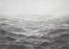 Under den kryptiska utställningstiteln A way not to explore the past, but to manipulate the present har Hammoud denna gång kompletterat det vi känner igen från konstnärskapet med delvis andra spår. Noterar också att antalet teckningar denna gång är fler än målningarna. Särskilt fin är den med en ansamling av dricksglas, så tätt placerade att de bildar en vackert silvrig yta. Bilden av en vattenyta i rörelse är utsökt tecknad men märkligt anonym. Tycker mig ha sett många vattenytor likt denna, både bättre och sämre. Då är sviten med små akvarellerade teckningar föreställande blyertspennor, lakoniskt betitlade Pencil on paper, intressantare. Här finns både en stillsam, konkret vardaglighet och en inbakad aggressivitet synlig i blyertspennans vässade spets.