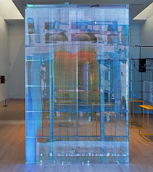 Amalie Smith sammanför, med hjälp av storskaliga LED-skärmar, vår digitala teknik med, till exempel antika och industriella, nedslag i den textila kulturhistorien.