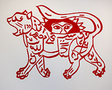 Afrang Nordlöf Malekian hyllar lejonet och solen, desamma i toppen av värdeskalan. Hans bärbara lejonsvansar lockar fram ett leende. En av dem är utrustad med ett bälte för att verkligen kunna snöra på sig. Humorn är som alltid det vassaste verktyget för att bryta genom ett motstånd.