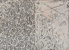 Jasper Johns kom in på den amerikanska konstscenen mittemellan abstrakt expressionism och popkonst. Flaggor, måltavlor och liknande bildelement användes därför att de var välkända för betraktaren. 1972 tog han en vändning bort från igenkännandet när korsskrafferingen gjorde entré i hans konst. ”Idiotiska tecken” lär han ha kallat dem för att beskriva deras neutralitet. Med dem blir hans arbete mer inåtvänt än i de tidigare verken med omedelbart bekanta bildelement. 1976 visades dessa verk första gången på Castelli Gallery i New York. Nu visas verken från ett decennium med denna teknik på Gagosians båda våningsplan på Madison Avenue i New York.
