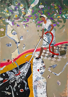 Med en (för feminismen) befriande (och förmodligen för helheten helt nödvändig) galghumor gör hennes dammsugerska så småningom sitt segertåg på alla möjliga och omöjliga ställen. Ett av de roligaste och mest träffsäkra varianterna är hennes Sorry Man från 2025 där dammsugerskan suger upp ett gäng karlar av bara farten – när det ändå ska storstädas. En annan fullträff är Caspar David Friedrichs-parafrasen Vandrerskan från 2014 där hon pliktskyldigt städar den klippavsats som den kontemplerande filosofen tidigare stått på. Dammsugerskan har alltjämt mycket att göra i männens efterföljd.