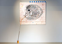 Jag får tillstå att möjligheten att se verk av Stina Stigell utövade en särskild lockelse för att ta mig till konsthallen en kall februaridag. Få kan som hon skapa guld av i princip ingenting. Kartongskräp, sprayfärgade makaroner och slaktade trädgårdsmöbler är fullt tillräckligt för att bringa en konstens lekfulla mening. I utställningens centrum står möjligen ett minne över vad som skulle kunna vara en stol. I fonden hänger en solkyss i enklast möjliga spillmaterial. Vakthunden av strimlade kartongrullar sätter den övriga utställningens ton.
