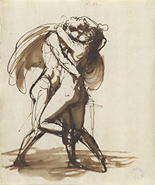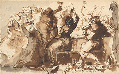 Penna och brunt bläck, lavering i brunt, på papper.© Johan Tobias Sergel