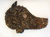 Roger Hanssons collageartade värld av cowboy-änglar, elefanter, rättrådiga gränspoliser och bilar ur glömskans leksakslådor är intakt. På den aktuella utställningen introduceras även vägen till ett nytt paradis..