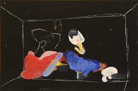 I sviten "Medaljongen under ditt hjärta" visar hon prov på ett effektivt och närmast pragmatiskt användande av kontrastspelet mellan de svarta bakgrunderna och förgrundernas fria formsammanställningar. I den mindre iögonfallande "Gabrielsviten", med sin blyga färgskala och sökande linjespel, är kopplingen starkare till hennes tidigare verk. Den tonsäkra känslan och den stillsamma spontaniteten blir här de sammanfattande dragen.