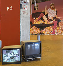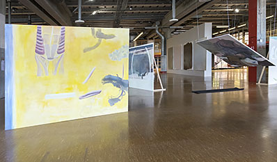 En målande installatör som däremot lätt anpassar sig till omgivningen är Johan Berglund (M) som monterat målningar på rullbara vagnar. Hans cartoon-inspirerade figuration är driven, humoristisk och leker med gränserna för när vuxenheten faller tillbaka i ungdomlig lust och för stunden snävare intressen.