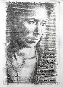 Stina Skantze kompletterar utställningen med teckningar i det lilla galleriet. Hennes skickligt utförda teckningar skildrar känslotillstånd eller refererar till rockens förgrundsgestalter. ”People, hell and angels” – Bildsamtal med L. Cohen kallar hon utställningen.