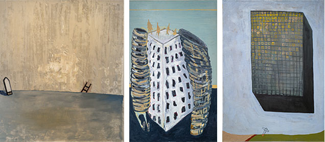 Här finns en poetisk ton som ofta blandas med en naiv leklust och ett slags associativt flakhoppande. Infallen och de bildmässiga fasförskjutningarna är många – och alltid innehållsligt avgörande. Det kan exempelvis röra sig om ett klottrat kors under ett svävande höghus, eller en stege som äts upp av horisontlinjen eller skosulor som tagit formen av två gravstenar eller möjligen utropstecken.