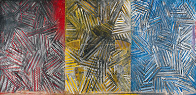 Jasper Johns kom in på den amerikanska konstscenen mittemellan abstrakt expressionism och popkonst. Flaggor, måltavlor och liknande bildelement användes därför att de var välkända för betraktaren. 1972 tog han en vändning bort från igenkännandet när korsskrafferingen gjorde entré i hans konst. ”Idiotiska tecken” lär han ha kallat dem för att beskriva deras neutralitet. Med dem blir hans arbete mer inåtvänt än i de tidigare verken med omedelbart bekanta bildelement. 1976 visades dessa verk första gången på Castelli Gallery i New York. Nu visas verken från ett decennium med denna teknik på Gagosians båda våningsplan på Madison Avenue i New York.