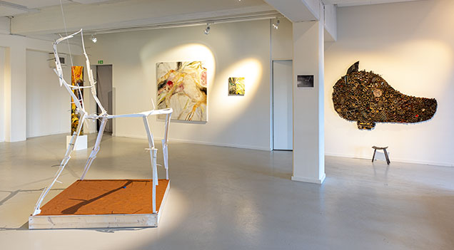 Flera av de aktuella utställarna har sina ateljéer i huset. På den pågående utställningen visas måleri av Alice Máselniková. video av Belinda Morén, måleri av Edmon Khalil, en installation av GO.RA, keramik av Olivier Maximilian samt objekt och skulptur av Stina Stigell.