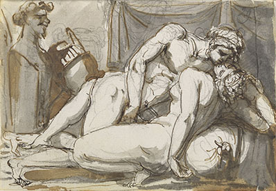 Penna och brunt bläck, lavering i brunt, på papper.© Johan Tobias Sergel