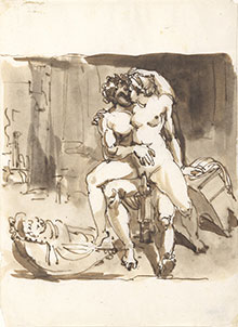 Erotiken och falloskulten var på modet och Sergel liksom andra kopierade ur en bannlyst handledning över samlagsställningar. Ur Sergels hand vecklas en ömsint och kärleksfull vardagsscen; frun i huset har foten på vaggan medan hon i sin tur vaggas i knäet av sin kåte man. Mer autentiska bilder från hemmet med Anna Rella som ”loppar sig” eller lillpojken jollrande på Sergels ståtliga figur kapar märkvärdigt nog avståndet till tidens 1700-tal. I dessa levandegörs Sergels inkännande geni.